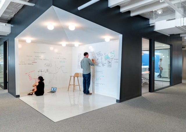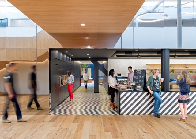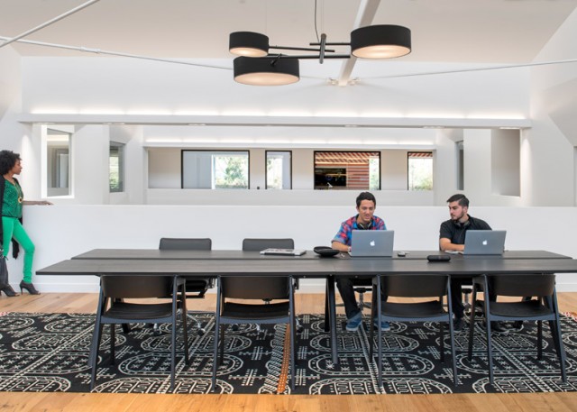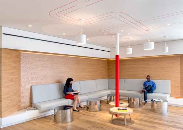 蘋果公司花了30億美金收購了聲樂設備品牌Beats Electronics,那時Beats剛剛搬進了嶄新的設在加州Culver City的總部。盡管它現在變成了的蘋果帝國的壹部分,新的Beats辦公室並沒有玻璃和鋼筋,也並不是像我們期望的那樣的極簡式風格。相反,它的辦公區明亮,有趣,具有強烈色彩的休息區。這裏沒有太多離譜的設計,設計的重點是建立一個靈活,舒適的工作環境,而不是一個“內飾盛行的美國矽谷風格”。