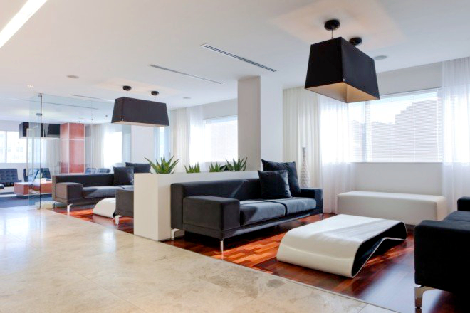 色調上選用了大方的白色和黑色作為主基調,但一些原木材質也有效的進行了補充,讓整個空間感覺沒有那麼嚴肅緊張,窗簾也有輕盈的感覺,當陽光落進來,讓整個辦公的環境充滿了溫情和舒適感。